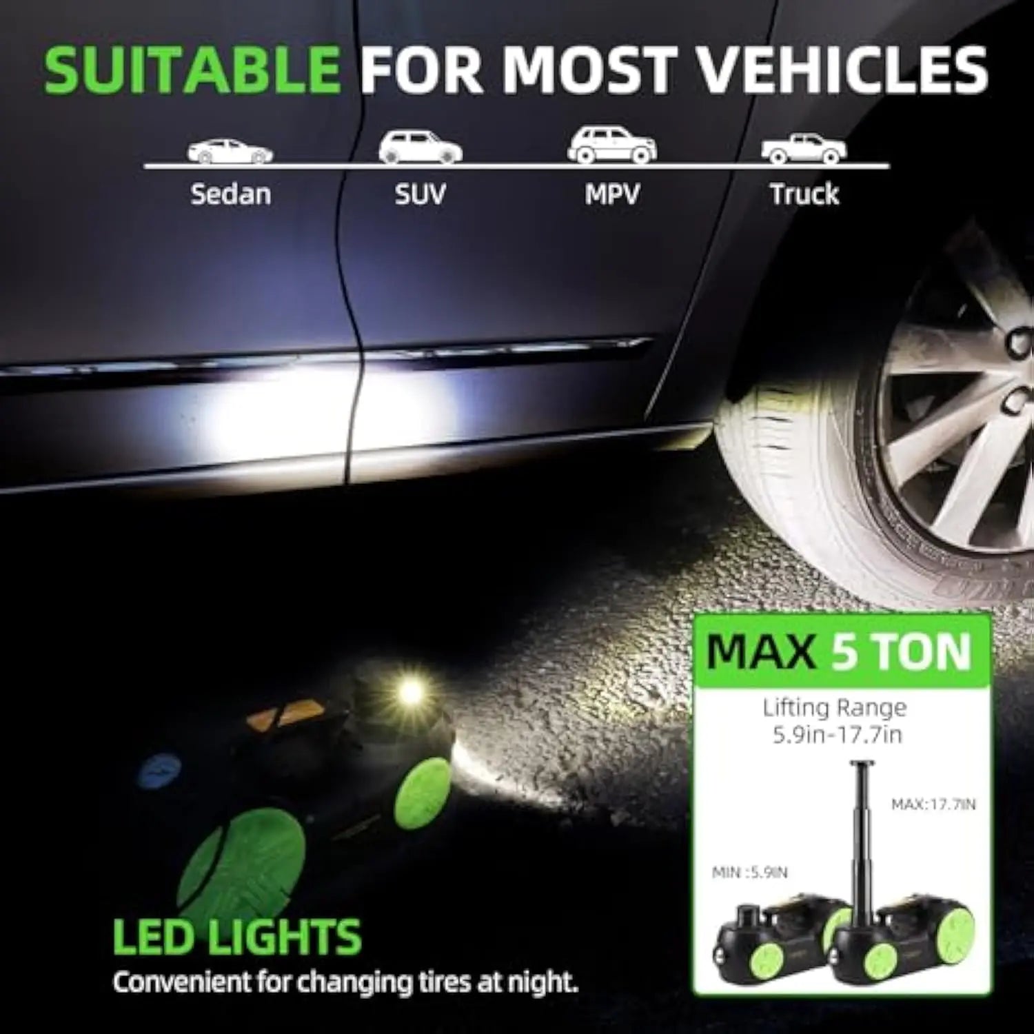 Manage your car maintenance with ease with this 4 In 1 Multifunctional 12V 5T Electric Hydraulic Jack. This portable tire lifting tool is designed for both cars and trucks, making tire repairs effortless and efficient. With a lifting height of 53CM, it provides the power you need to tackle any roadside emergency. Its compact design ensures easy storage, while the multifunctional capabilities make it an essential addition to your toolkit. Don’t let a flat tire ruin your day—invest in reliability and convenience today!